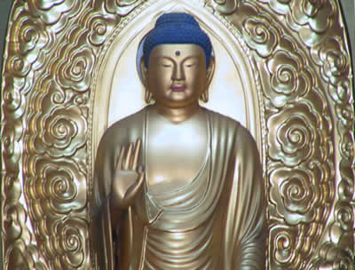 ご本尊さまは、阿弥陀如来さまです。 現世の凡夫を、お浄土からお導きに来て下さったお姿を顕す立像です。
